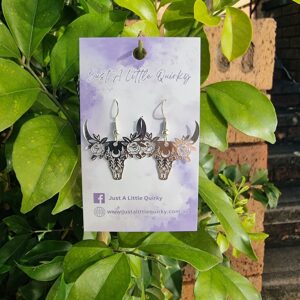 Boho Bull Skull And Flowers Hook Dangle Earrings