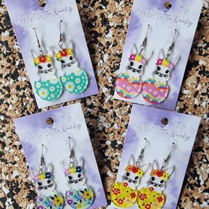 Acrylic Floral Bunny Inside Easter Egg Hook Dangle Earrings