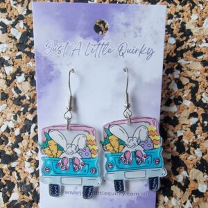 Easter Car Bunny Rabbit Acrylic Hook Dangle Earrings