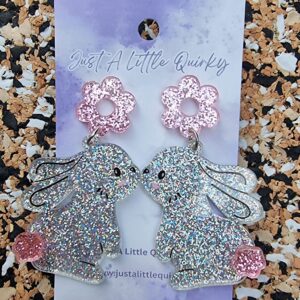 Glitter Easter Bunny Acrylic Stud Dangle Earrings