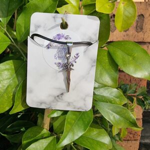 – This necklace is made with a leather chain which is 50cm in length with an adjustable chain going down to 45cm.