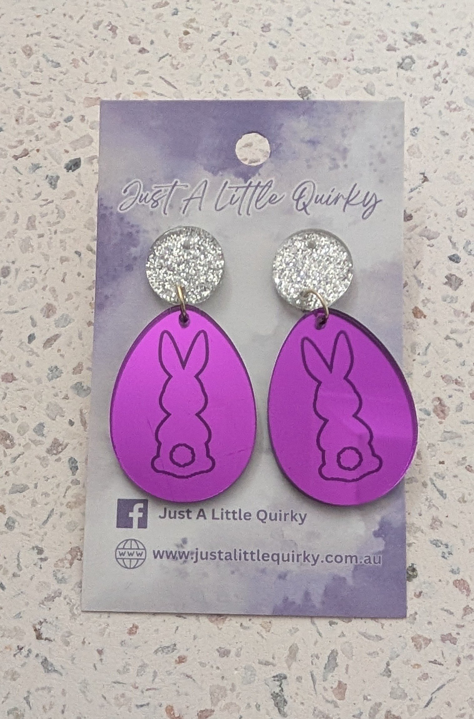 Be the first to review “Purple Mirror Easter Egg Engraved With Bunny Rabbit Acrylic Stud Dangle Earrings”