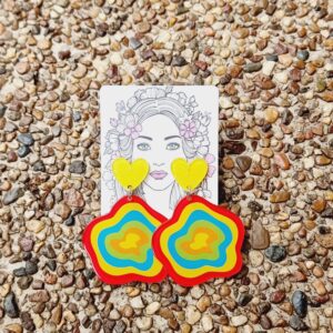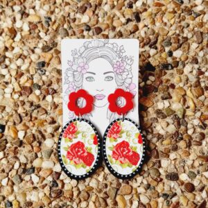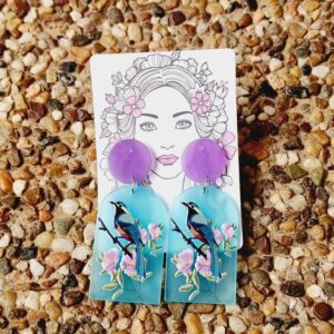 – These earrings are made with an acrylic top which is approximately 12 mm in size with a silver stud and come with a silicon backing for easy storing.