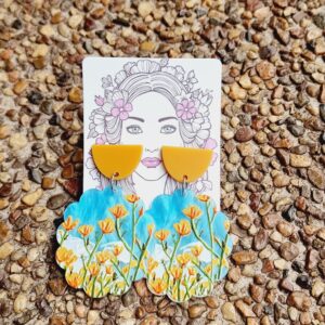– These earrings are made with an acrylic top which is approximately 12 mm in size with a silver stud and come with a silicon backing for easy storing.
