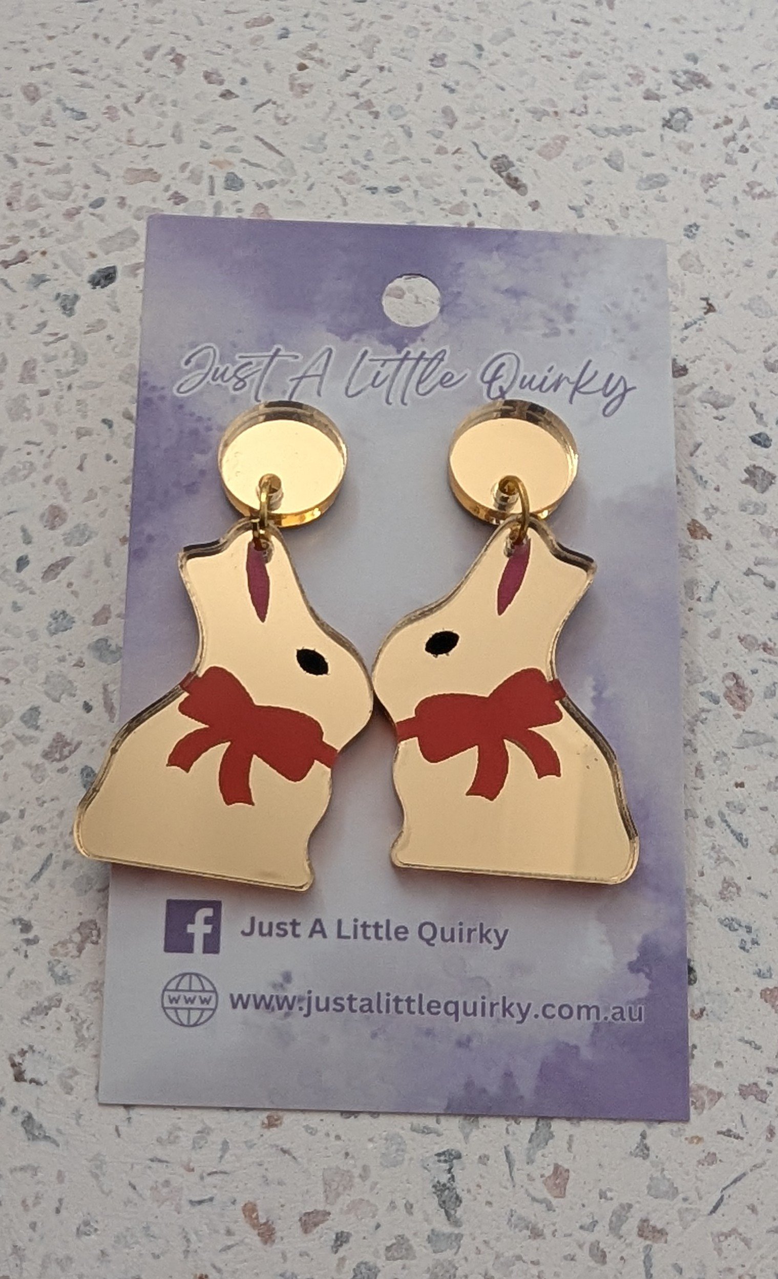 Looking for an alternative gift to give this Easter? Check out these cute easter design earrings! Our lindt bunnies are made from gold mirror acrylic and are hand painted. Check out the second picture to see how amazing these look outside.